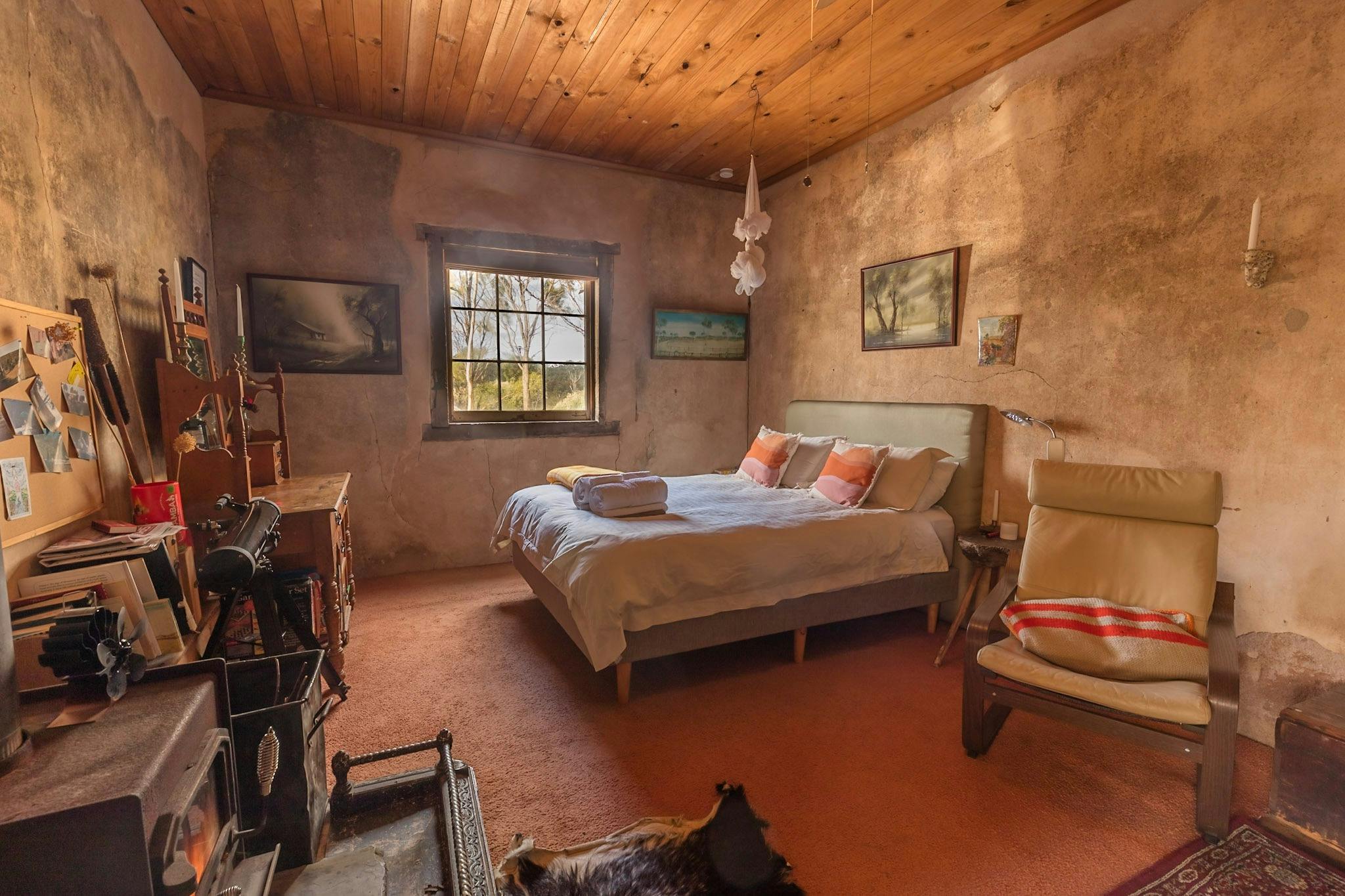 Built as a school in the late 1800’s the building is now a quaint but comfortable space to base yourself for a holiday in the region. A comfortable queen size bed, a fire to keep you warm, breakfast provisions, a hot shower and cooking facilities; all you need for a relaxing experience. You are a kilometre away from a main road (albeit a dirt road) which will guarantee a quiet time.