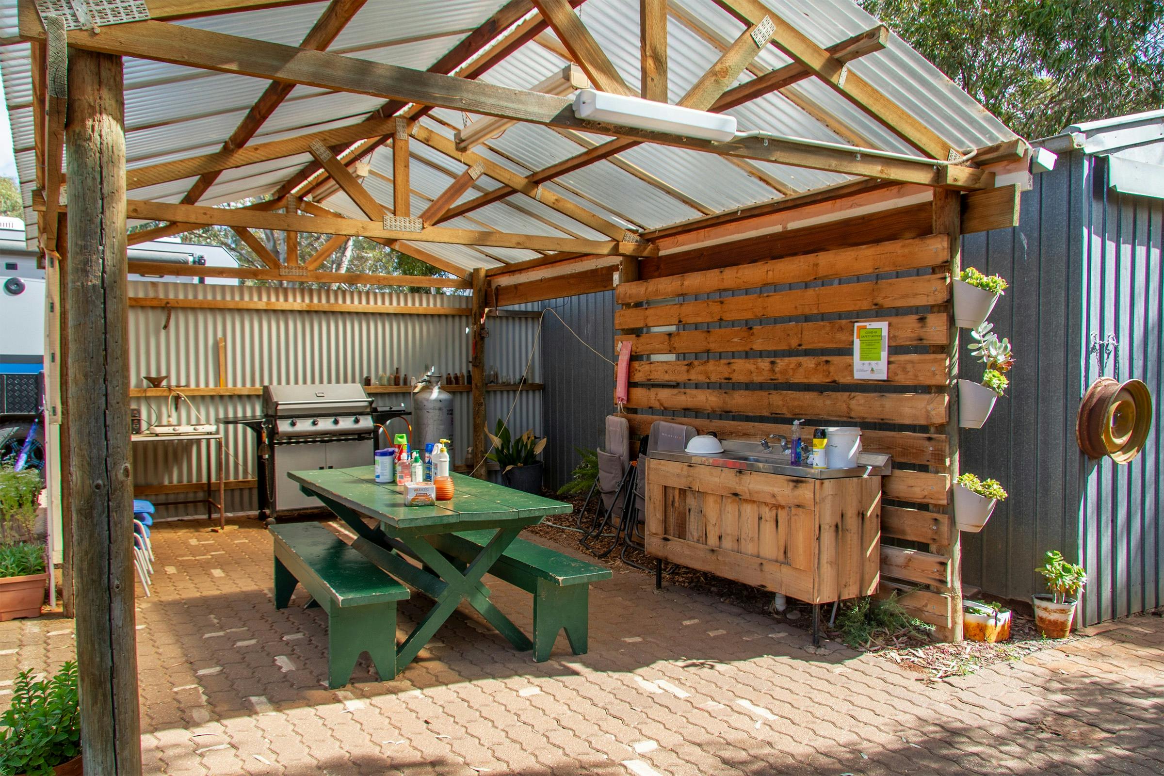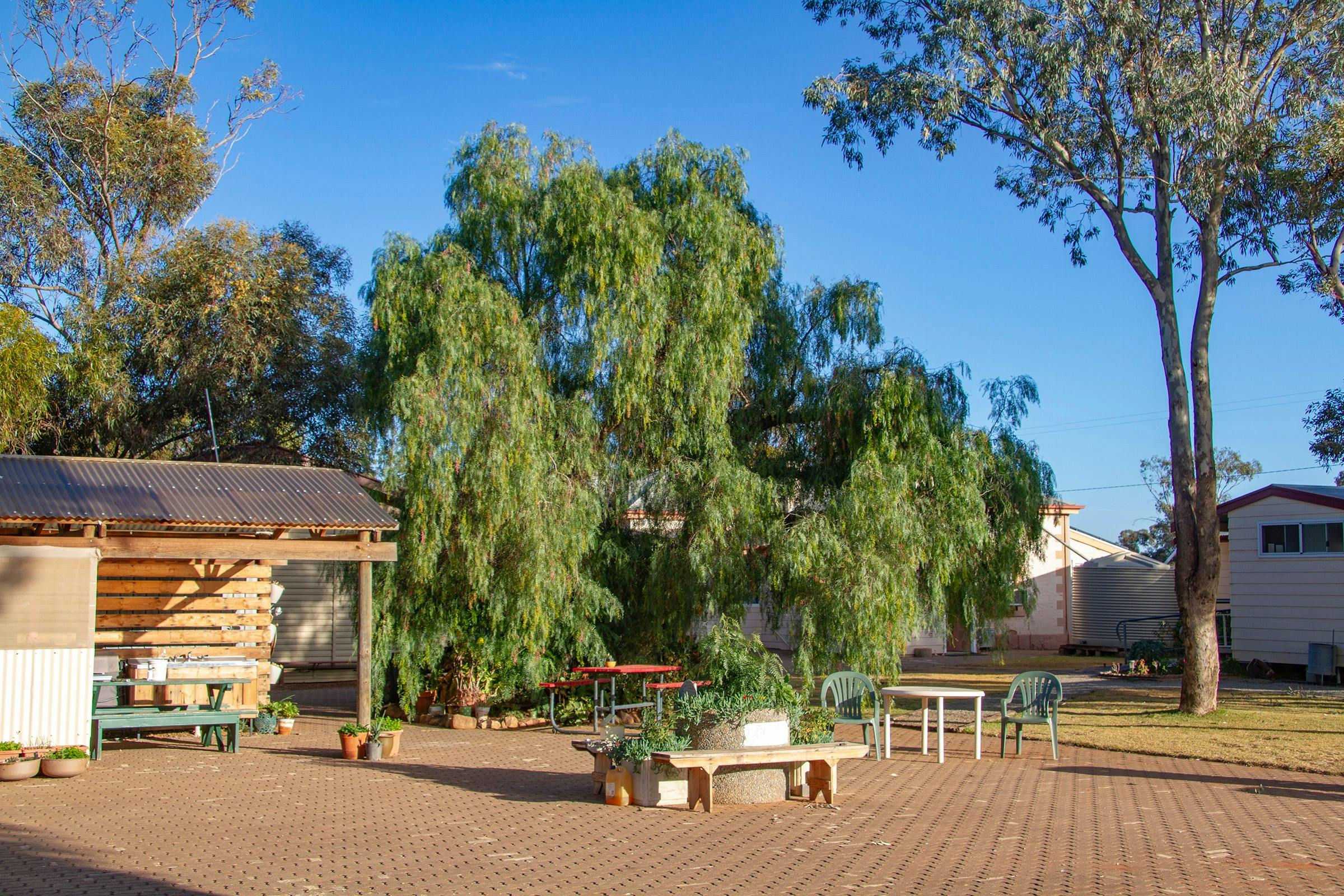 A small park with a difference, it is community owned and built within the old Carrieton Rural School providing a variety of accommodation options, and fresh clean facilities indoor outdoor/ kitchen, meeting room, BBQs , community room with wood heater, and meeting room. A notable feature is the school setting with gardens .