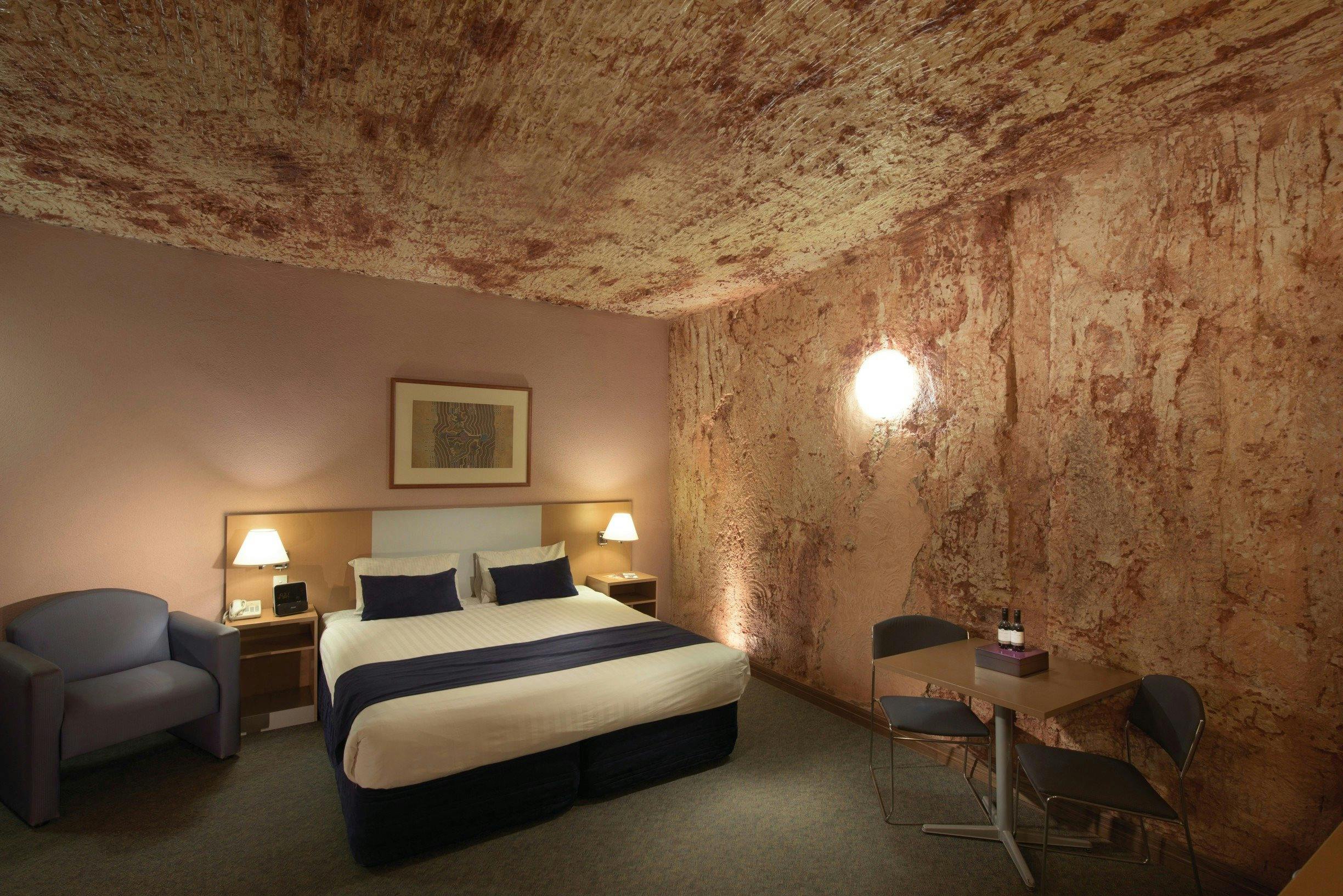 Desert Cave, the only international underground hotel, allows you to experience dug out style living. It is the experience of a lifetime. Underground accommodation, shops, cafe, bar and display areas all within beautiful soft, natural sandstone surrounds. Sleep underground or above if you prefer, enjoy fine dining, splash in the pool, relax in the spa. Stroll in the cool comfort of underground shopping.